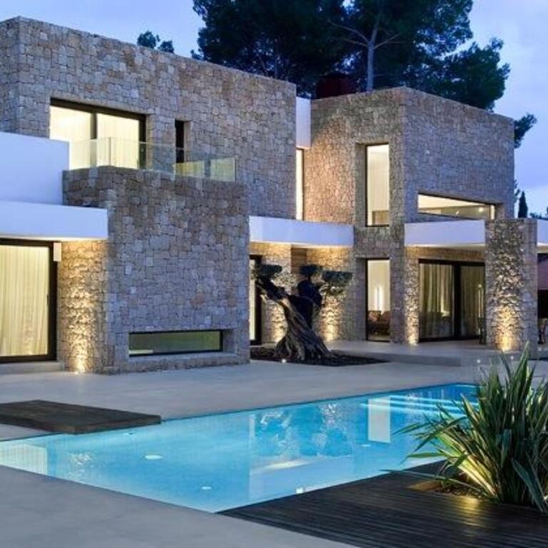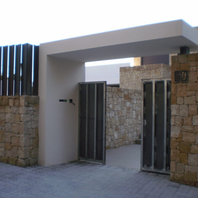 El presupuesto de esta construcción se ofreció al cliente y se decidió la volumetría del conjunto que se resuelve con piedra de mampostería con grandes ventanales buscando la apertura al jardín y zona de piscina.